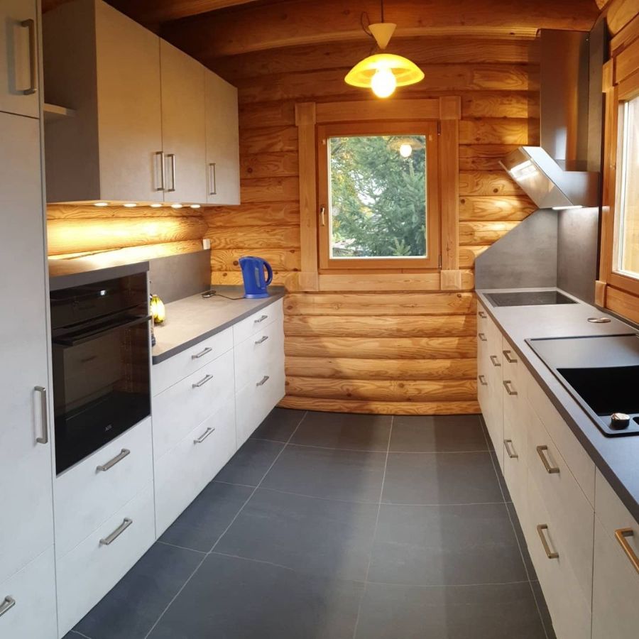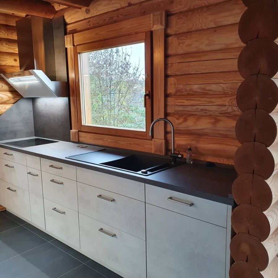 Сверх модная матовая столешница из кварца на кухню в дом со сруба