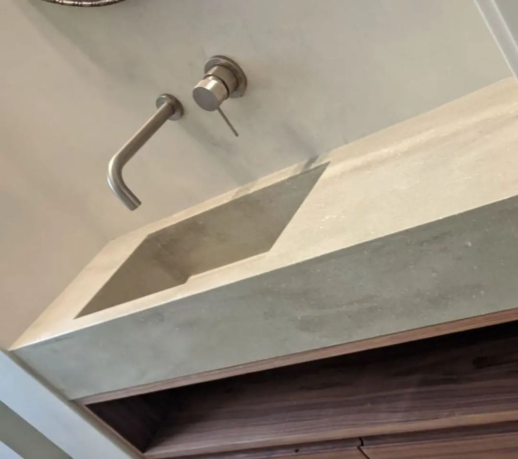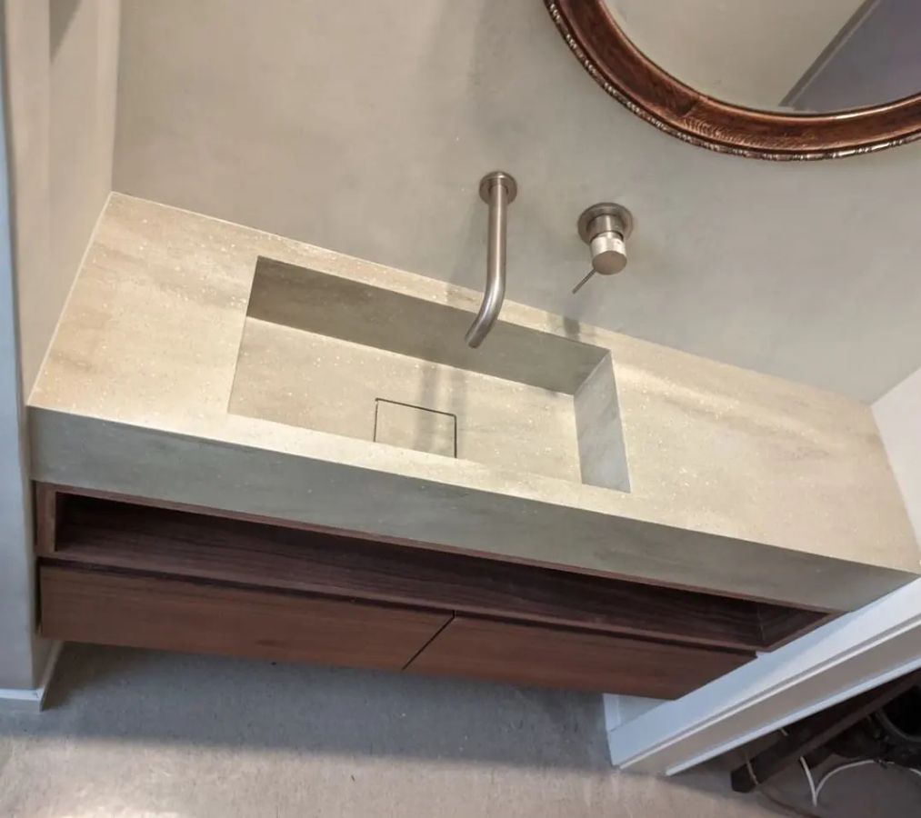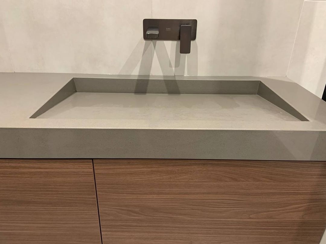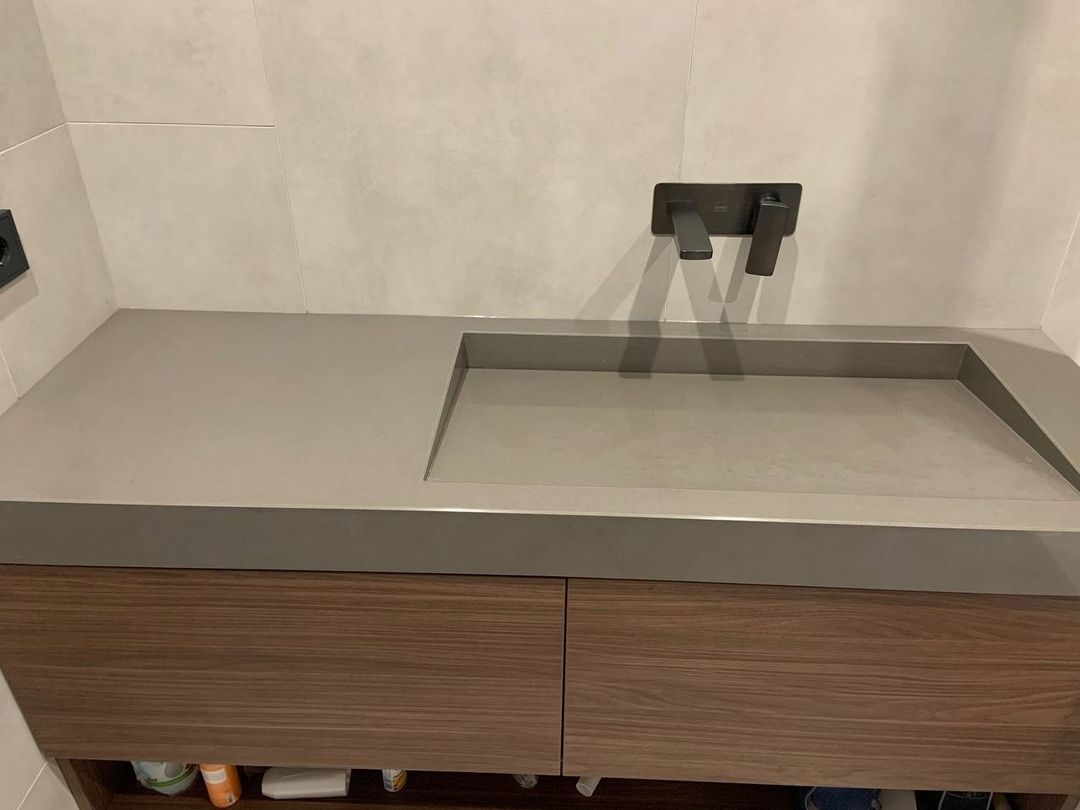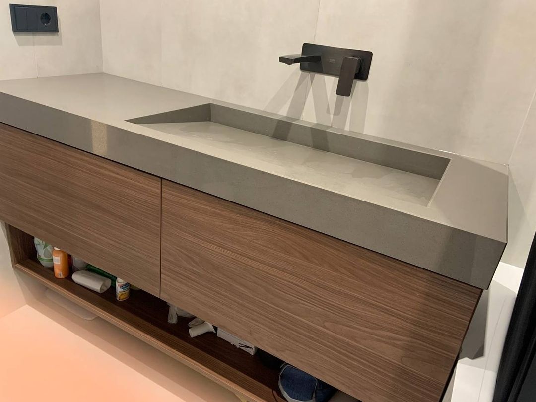 Раковина и столешница в один цвет из мраморовидного акрилового камня