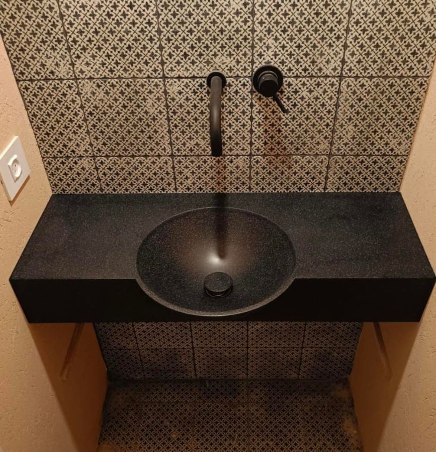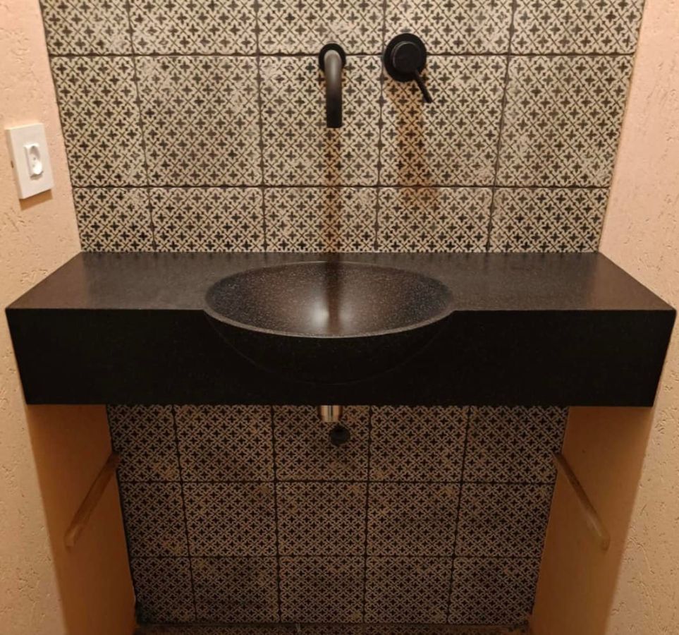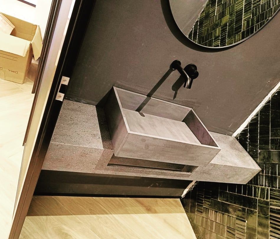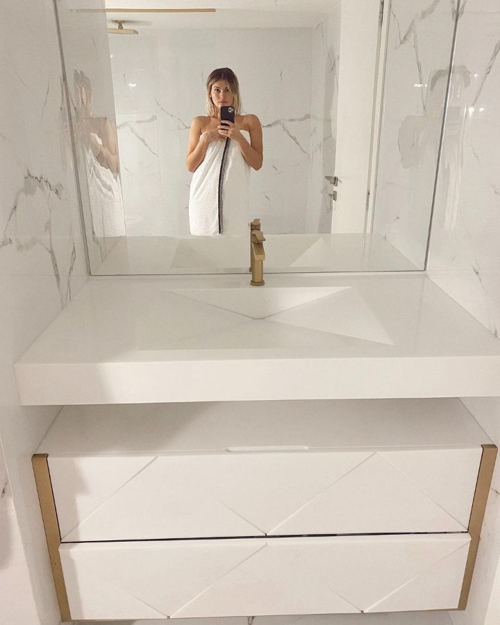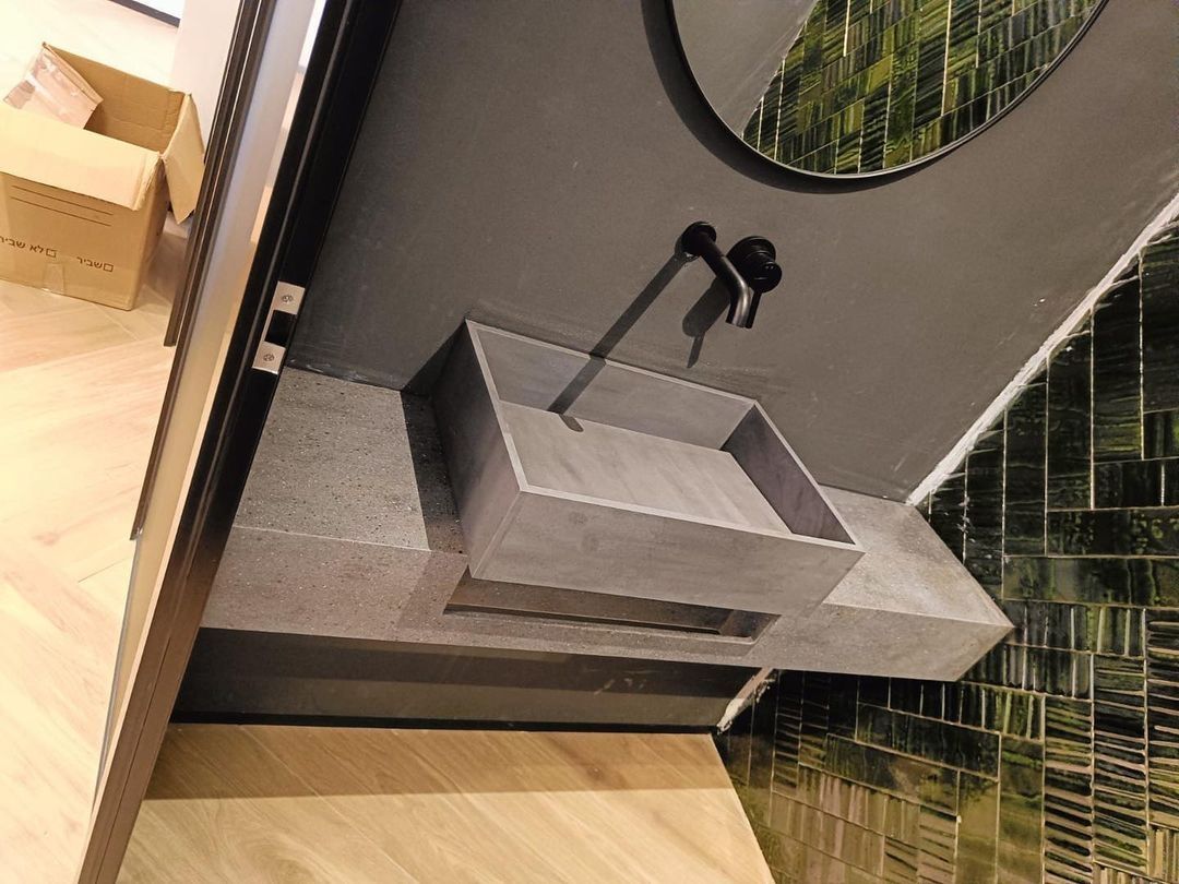 Раковина и столешница в один цвет из мраморовидного акрилового камня