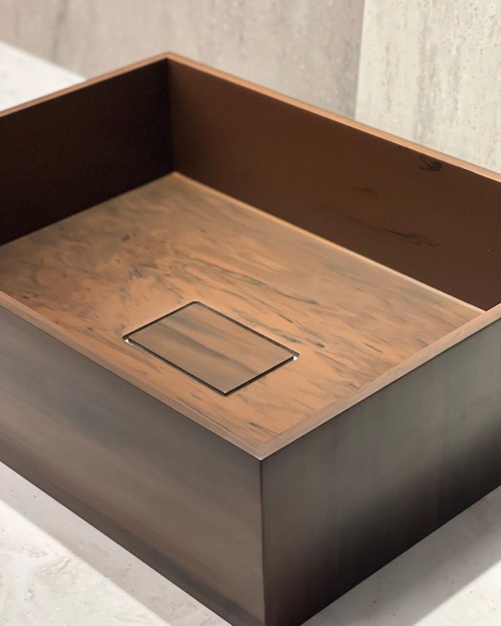 Раковина с щелевым сливом из акрилового искусственного камня на заказ