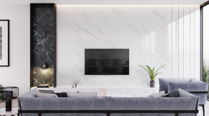 Панели из мрамора складываются не только в причудливое настенное панно, ими можно отделать интерьер, имитируя вертикальные колонны. Подобные вставки от Art Stone обладают не только эстетическими достоинствами, но и меняют пространственные ощущения. Панно из мрамора зрительно увеличивают высоту помещения, главное условие – их контрастный оттенок по отношению к остальным стенам. Для такого вертикального изделия хороши панели из мрамора яркого оттенка с хорошо выраженным рисунком. Например, Arabescato Orobico, Avalanche или индийские сорта серии Бидасар (Грин, Браун, Голд). На фоне однотонных стен такие вставки смотрятся волшебно, особенно, если на них закрепить бра. Панно из мрамора Avalanche New эффектно смотрятся на белых, серых, зеленых стенах – любого оттенка этого сорта камня. У индийского камня Бидасар цветовая палитра, соответственно, и возможности шире. В каждом из них уникальное смешение контрастных оттенков, позволяющих свободно фантазировать дизайнеру.