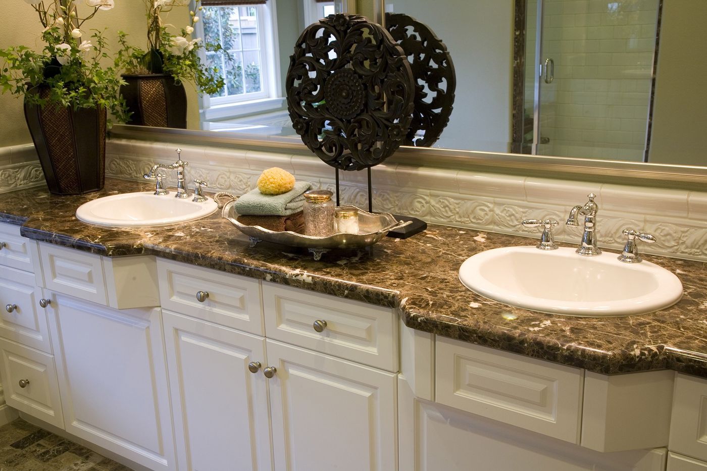 Столешница для санузла из натурального камня - это не только красиво, но чисто и гигиенично. С такой столешницей Вы не будете боятся плесени, не будете боятся, что она размокнет от сырости, впитает запахи или обеcцветится от мыла и порошка.